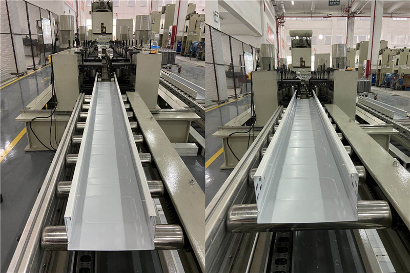 整条生产线由放料系统、校平系统、冲孔/切断系统、自动输送系统、成型系统、电控系统等部分组成。